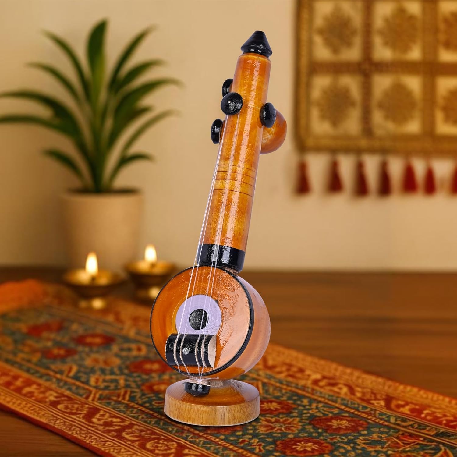 BIYANKA Handmade Wooden Veena Showpiece – 24 cm | Miniature Musical Instrument Model | Ethnic Decorative Handicraft for Home Décor, Office Table & Gifting