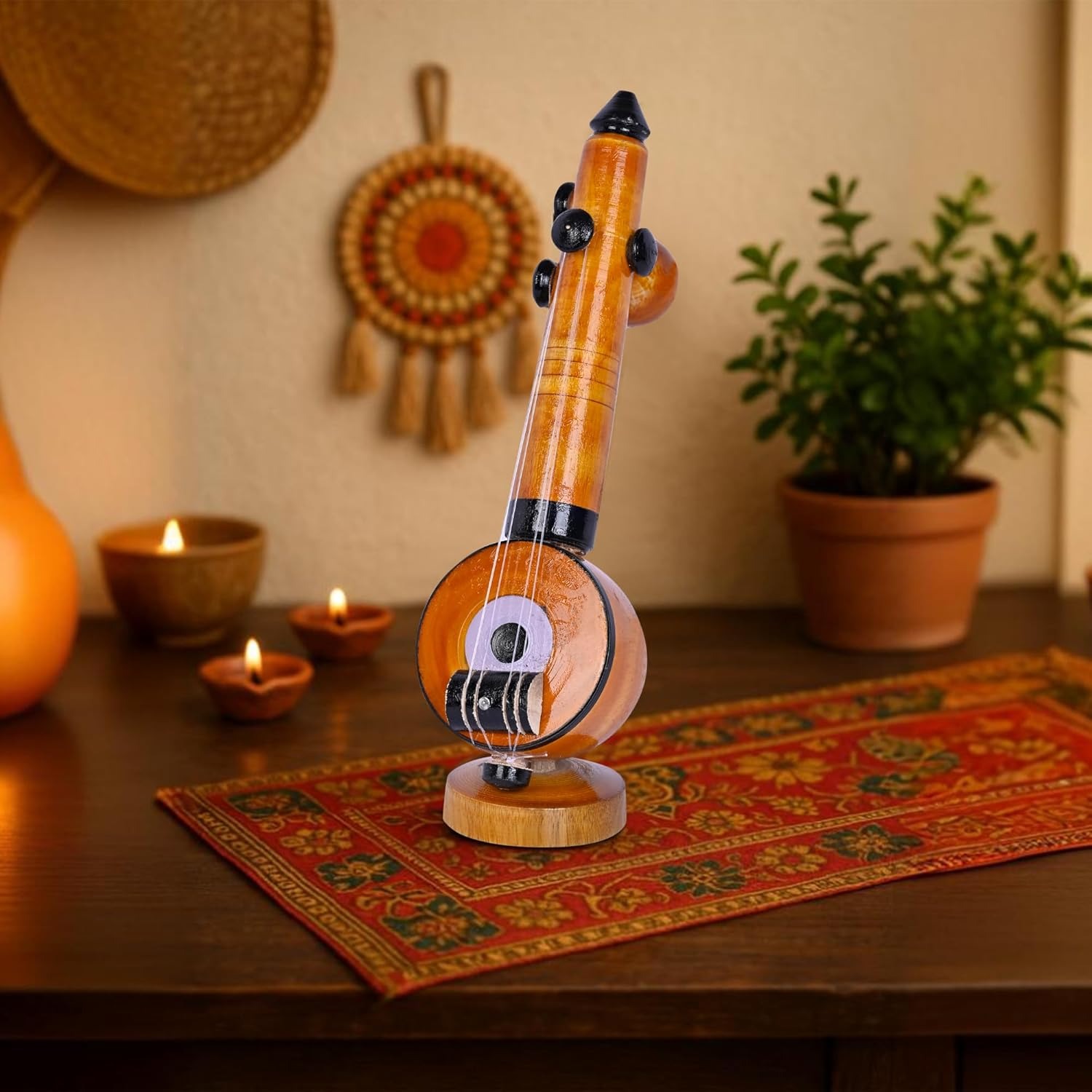 🎵 Handcrafted Wooden Veena: Exquisite miniature crafted with precision and traditional artistry.