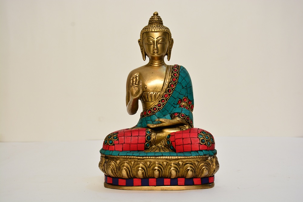 Brass Buddha Sitting 8 Inch With Stone Work