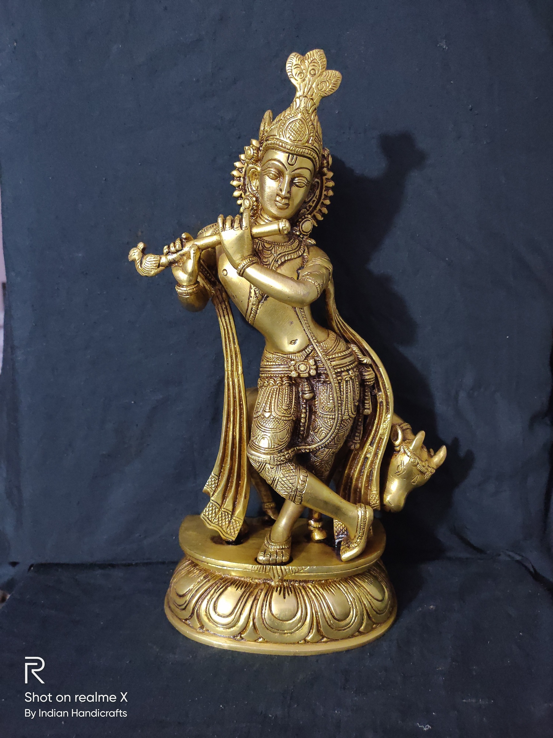 Enquire NowHeight: 11.5 (inch), Width 10.5 inch 7.3 KG Brand : Indian Handicrafts Code : IHK322 This product made Of Brass Material and Beautifully to make the figure look as real. Flute Playing Krishna Statue – Brass Handmade Sculpture – God Krishna Home Decor Made from Quality Brass and Handmade in India, perfect Hand work and perfect showcase of Indian Handicrafts. Spritual Lucky Gift, Thanksgiving Gift, Anniversary Gift, Wedding Gift, Birthday Gift, Diwali Gifts -
