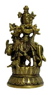 | Flute Playing Krishna Statue – Brass Handmade Sculpture – God Krishna Home Decor |
