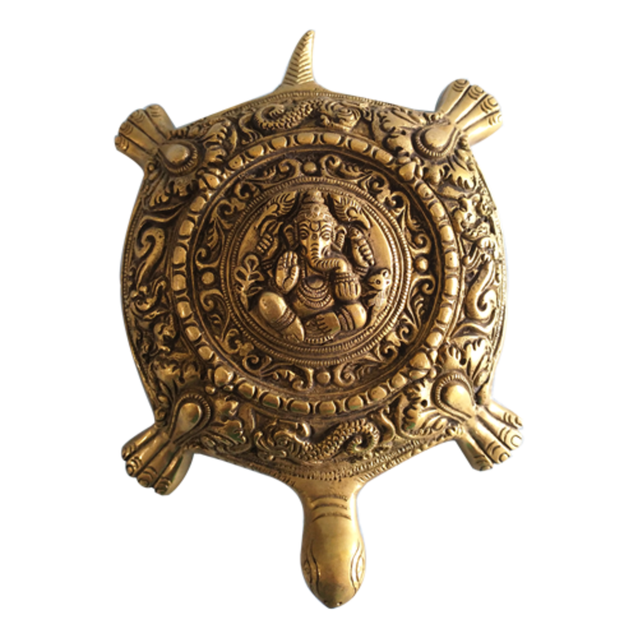 Brass Shankh sitting on a Brass Turtle Stand. A perfect choice for every altar