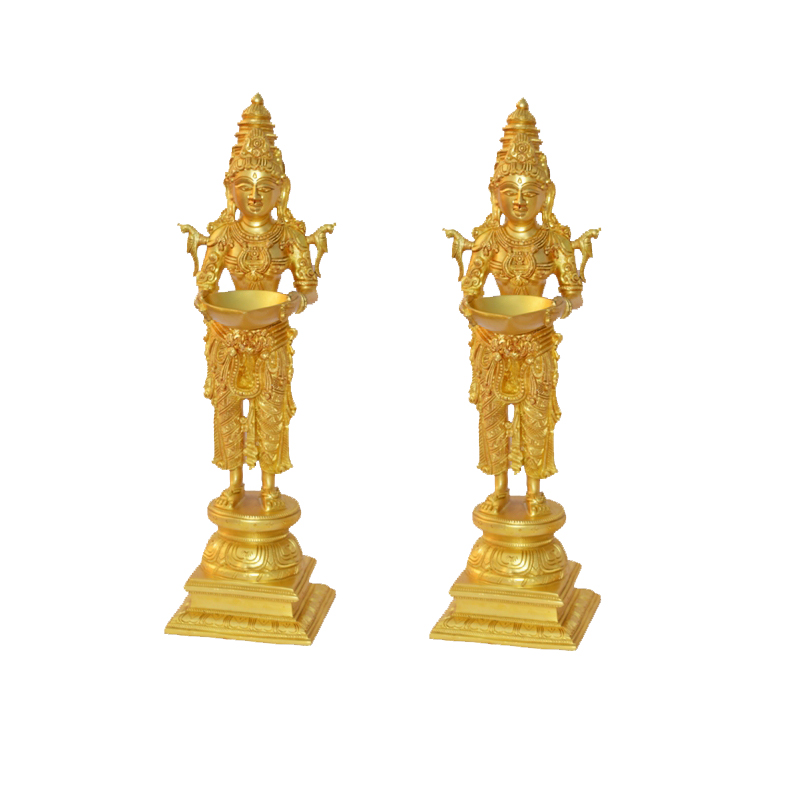 | South Indian Traditional Design Diya , Beautiful Indian Lady holding diya in hand This is exclusive in house design Use This Decorative Murti can be used as Pooja Mandir Interior Decoration for home and others |