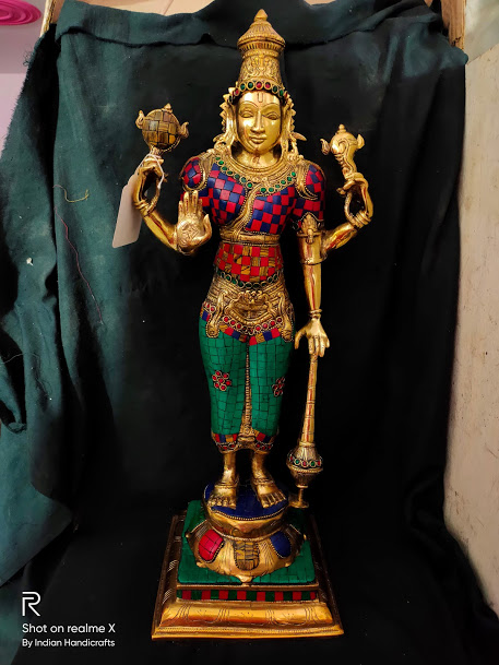 Enquire Now6 inch 2 KG Brand : Indian Handicrafts Code : IHV602 Lord Vishnu and Goddess Lakshmi are sitting together and giving their combined blessings to their devotees. Sheshnaag ( Snake ) is protecting them. Complete the decor of your home in the utmost of style or add some Indian flair to your living room decor. A Genuine Indian Work Of Art Produced With Traditional Casting Technique By Artisans In India. Use the statue to bring a touch of Indian culture to your Home Décor This product made Of Brass Material and Beautifully to make the figure look as real. -