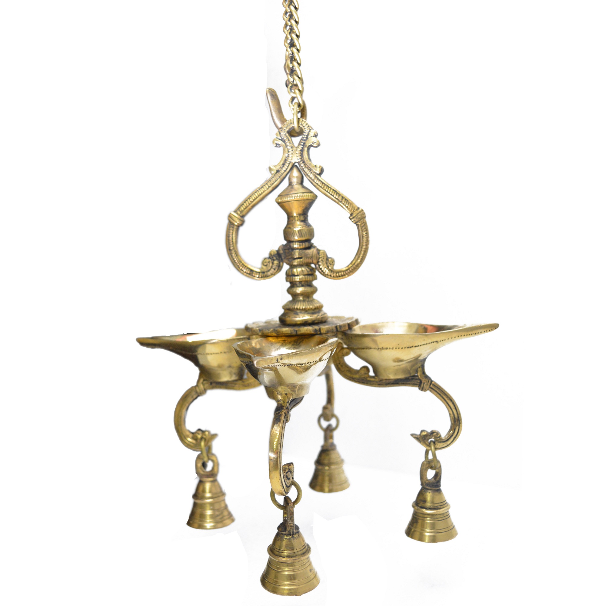 Oil Lamp Hanging Double Peacock With 6 Diya