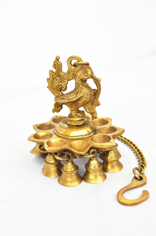 Oil Lamp Hanging Peacock With 9 Diya
