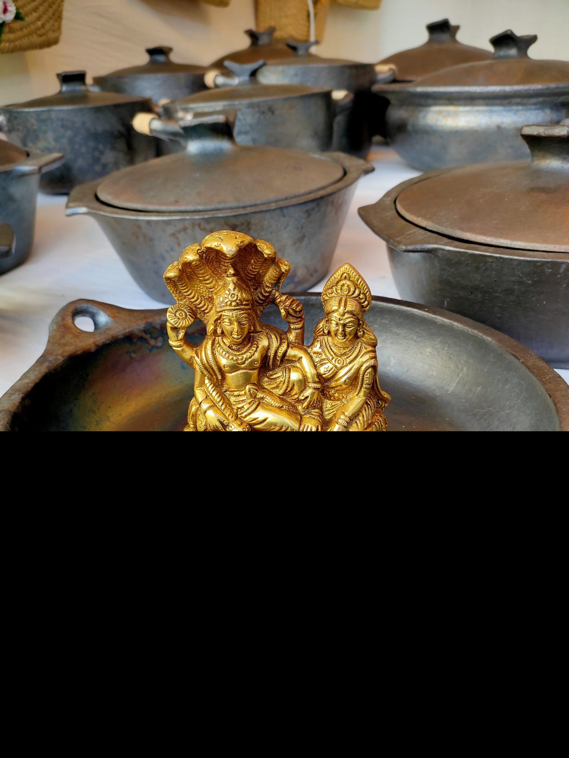 Enquire Now6 inch 2 KG Brand : Indian Handicrafts Code : IHV602 Lord Vishnu and Goddess Lakshmi are sitting together and giving their combined blessings to their devotees. Sheshnaag ( Snake ) is protecting them. Complete the decor of your home in the utmost of style or add some Indian flair to your living room decor. A Genuine Indian Work Of Art Produced With Traditional Casting Technique By Artisans In India. Use the statue to bring a touch of Indian culture to your Home Décor This product made Of Brass Material and Beautifully to make the figure look as real. -